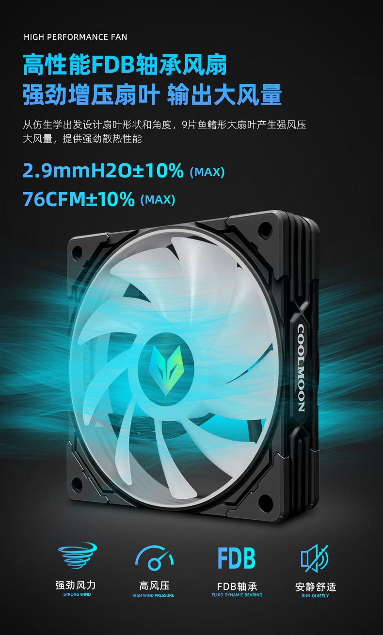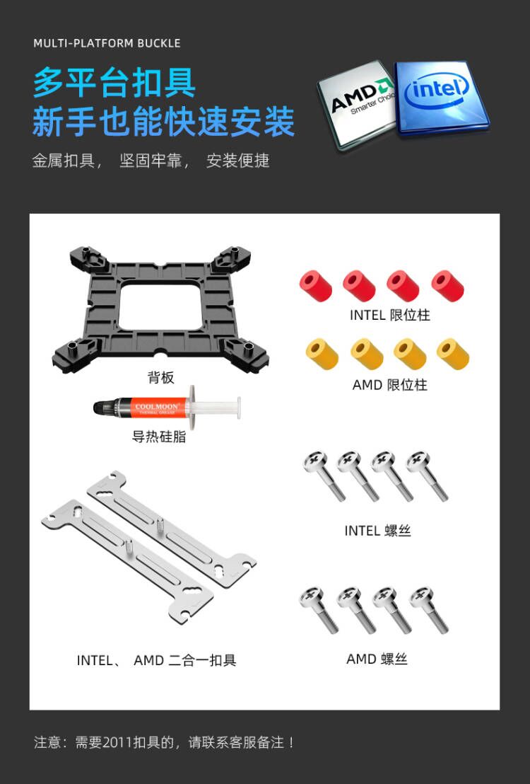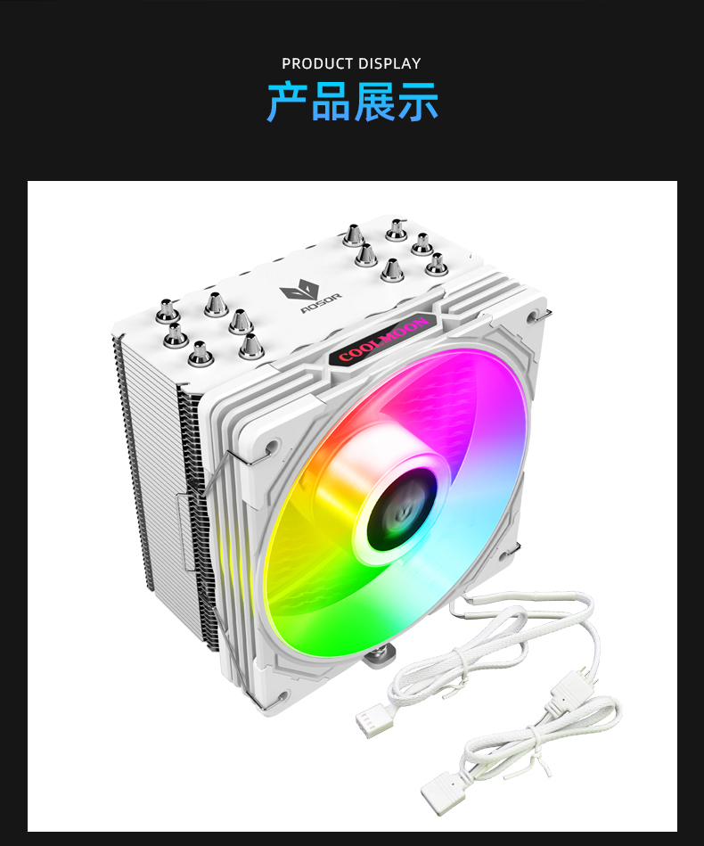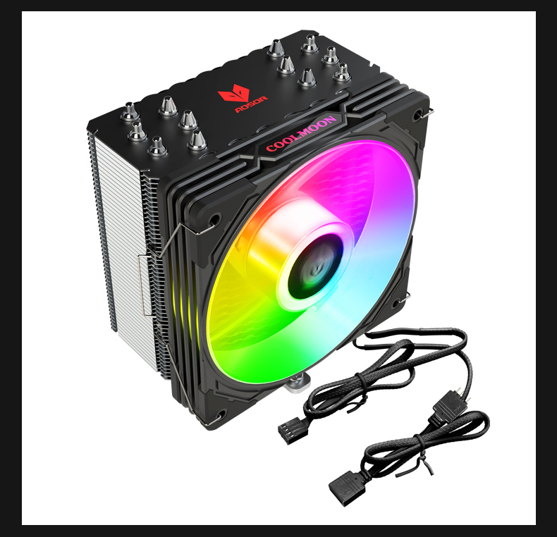 COOLMOON酷月 AS600六铜管CPU散热器台式主机电脑温控静音ARGB发光6热管高效散热cpu风冷风扇
