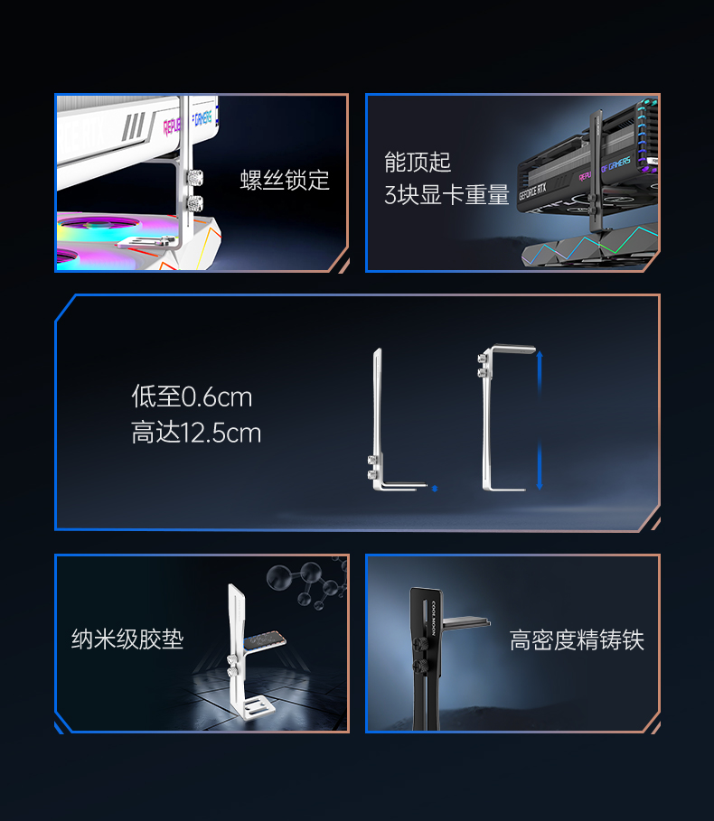 COOLMOON酷月 风骑士F1显卡支架台式电脑显卡保护上下可调节GPU立式支撑架