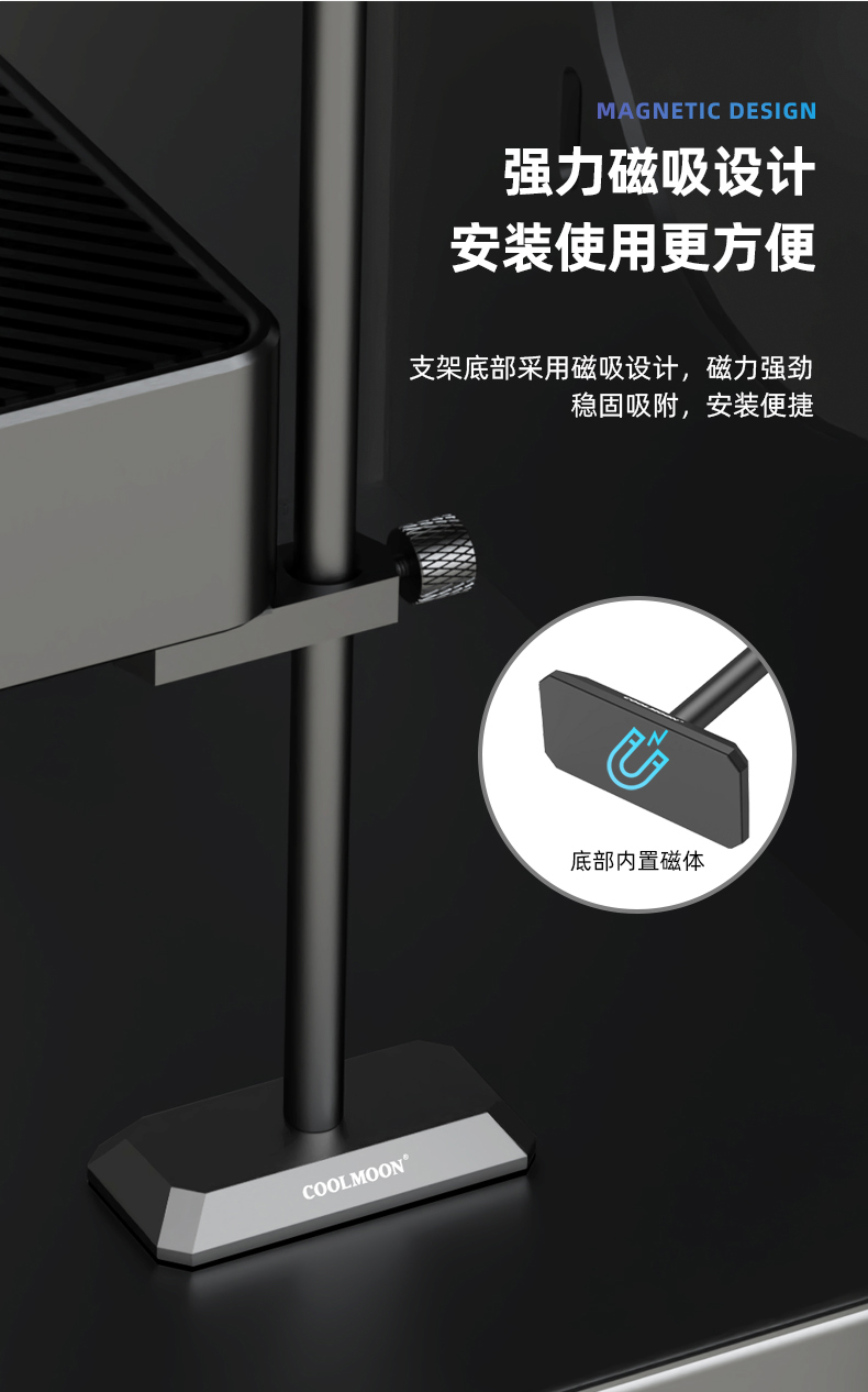 COOLMOON酷月 GH195立式显卡支架台式电脑显卡伴侣竖装托架铝合金磁吸GPU显卡支撑架